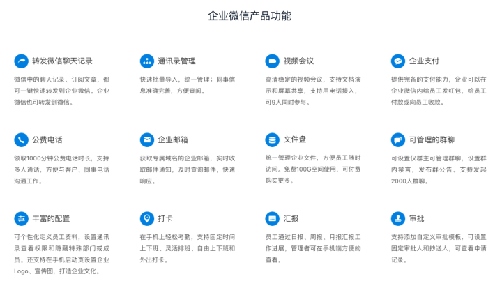 “3项独有能力”,它们是连接微信的能力、支持小程序的能力、和支持企业支付的能力。很多的合作伙伴希望,基于企业微信连接微信的能力做一些开发,帮助企业更好地完成 B2C 的连接,实现更好的服务。这是企业微信独有的能力,也是一个官方的能力。
